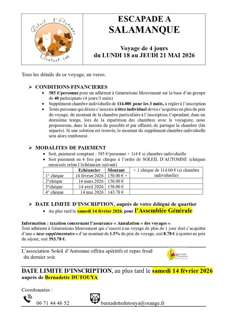 Activités des clubs affiliés à Générations Mouvement 40