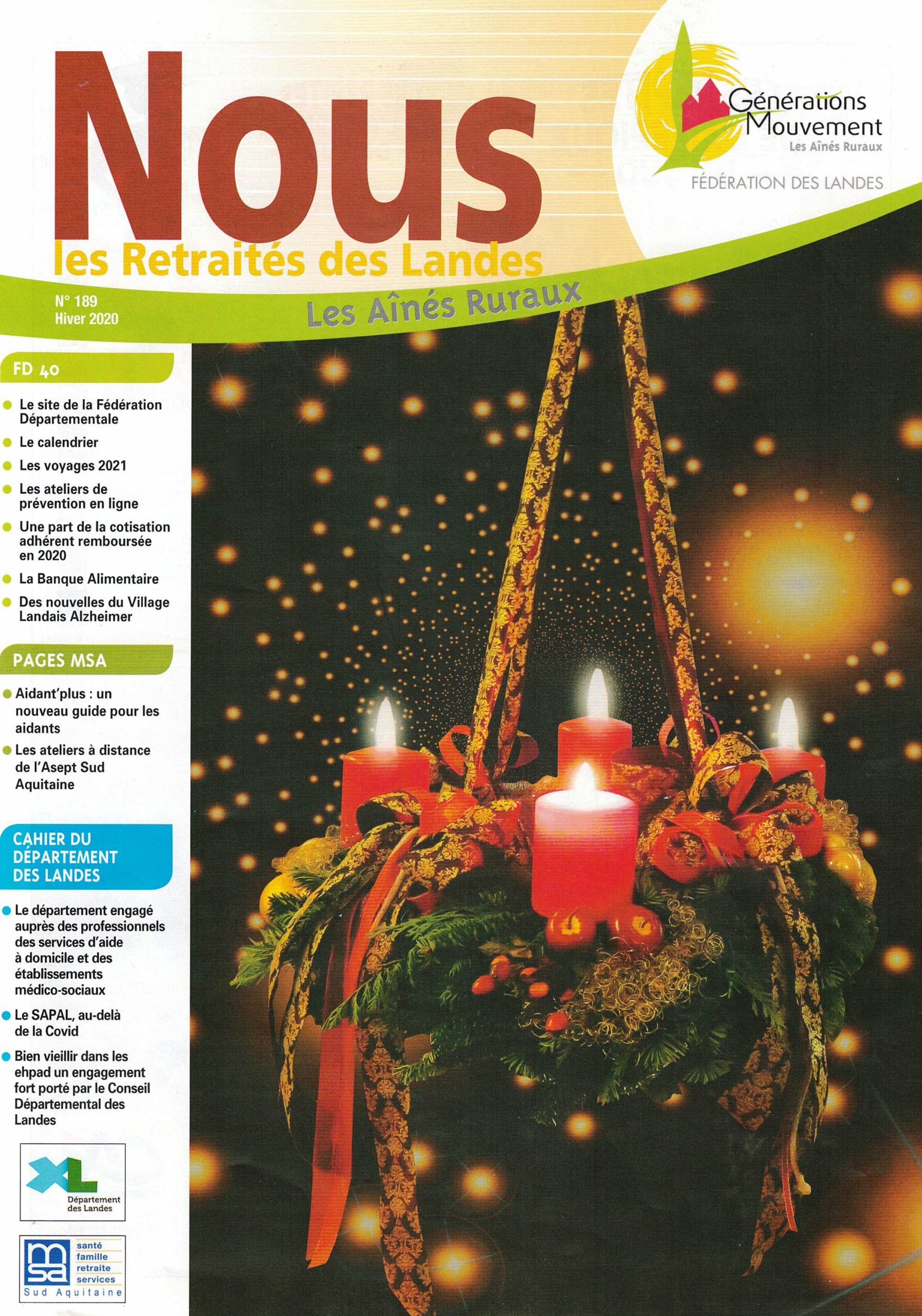 Le bulletin trimestriel de notre Fédération Départementale » Nous, les Retraités des Landes » est réalisé par les adhérents et pour les adhérents.