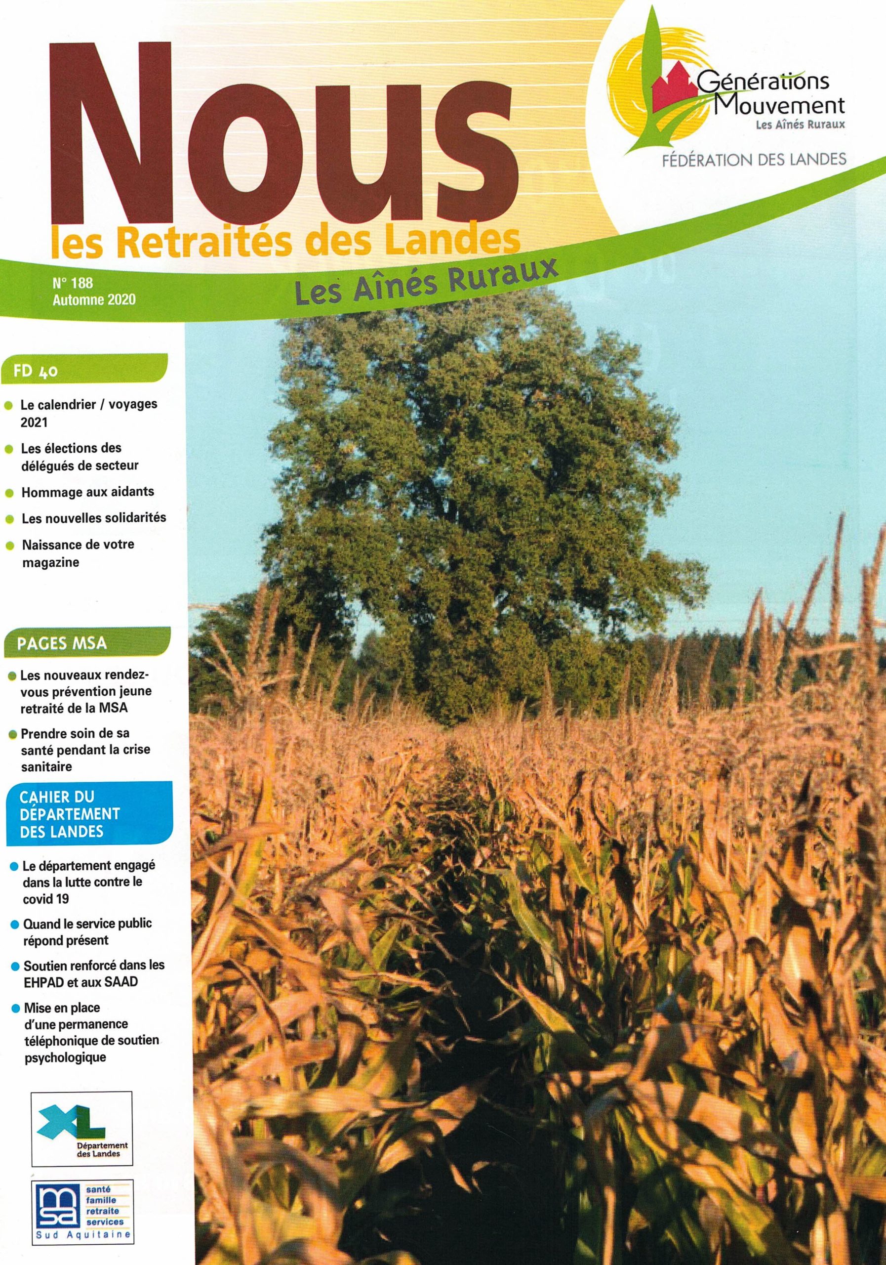 Il est réalisé en partenariat avec le Conseil Départemental des Landes et la MSA Sud Aquitaine. Les lecteurs peuvent ainsi bénéficier dans chaque édition des communications de la MSA sur 2 pages et de celles du Conseil Départemental sur 5 pages.